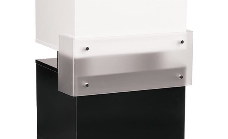 Elegancka recepcja z frontową częścią wykonaną z pleksi, idealna do nowoczesnych salonów. Produkt wymaga samodzielnego montażu.